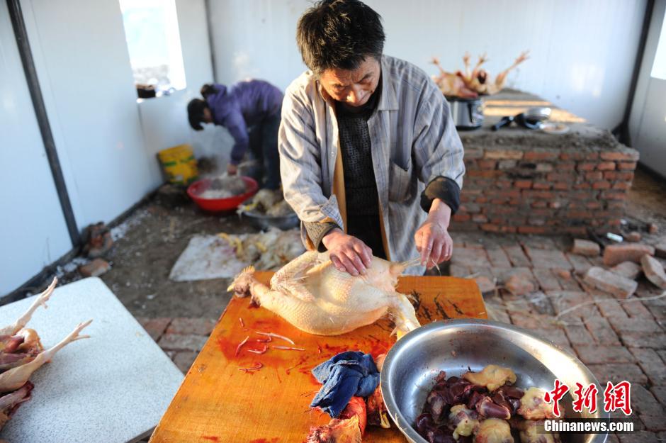 11月23日,松原市腰英吐村一户村民将自家饲养的家禽全部宰杀。据了解,23日清晨前郭发生的5.8级地震,令当地房屋受损严重,该户村民要撤离震区,家禽携带不方便,无奈只能将家禽全部宰杀。中新社发 张瑶 摄
