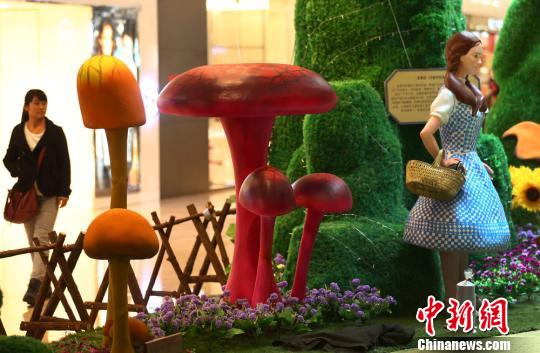 11月25日,一组仙境般的童话装置亮相南京德基广场,美丽的多萝西带着寻找勇气的狮子、寻找心脏的铁皮人、寻找头脑的稻草人等好友完美复原著名童话《绿野仙踪》中的故事场景,向市民呈现一个炫色斑斓的童话世界。