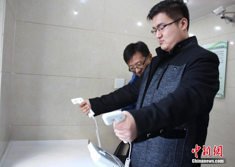11月26日,江苏盐城市民在该市香苑西园“健康小屋”进行自助式体检。“健康小屋”为盐城城南新区国家智慧城市试点项目,内设身高体重、人体成分分析、心血管功能、血压、心电功能等各种类型的健康采集器,全部设备通过网络互联互通,实现数据汇聚分析并生成健康报告。谷华 摄