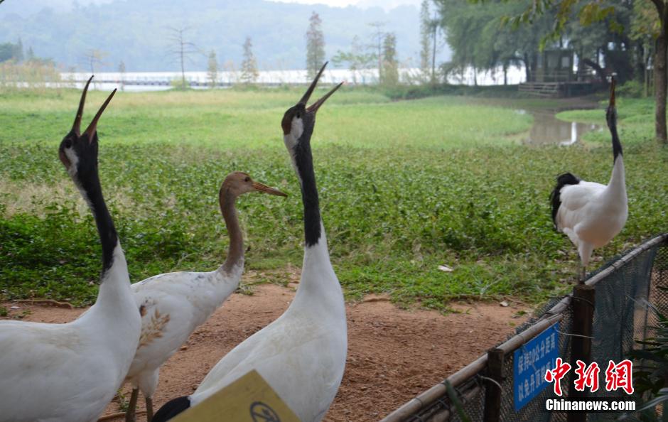 11月27日,广东星湖国家湿地公园在肇庆星湖揭牌,并现场启动今年肇庆星湖湿地冬季观鸟活动。目前止,中国内地共有298处试点建设的国家湿地公园,其中,32处通过验收获得正式“中国国家湿地公园”,“广东星湖国家湿地公园”是广东唯一一家通过国家验收的国家湿地公园。星湖湿地公园的高寒极地“湿地之神”丹顶鹤与非洲火烈鸟共栖被誉为“世界奇观”之一。图为湿地公园内的丹顶鹤。中新社发 黄耀辉 摄