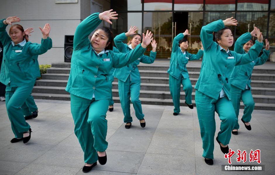 11月27日,南京大学仙林校区的保洁员为学生们跳起舞蹈《火了》,引来现场阵阵叫好声。当日,“这个冬天不太冷”校园暖冬感恩活动在南京大学举办,该校地理与海洋科学学院和法学院学生联合后勤集团兰达物业开展共建,通过义卖等方式筹款,为保洁阿姨们购买冬天防寒用品,在寒冬来临之际送上一份温暖。泱波 摄