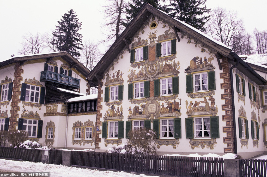 德国的奥伯阿玛高小镇被称作“壁画小镇”,小镇里大多是两到三层高的建筑物,在古朴的木屋墙壁上,用鲜艳的色彩画出一幅幅精美的壁画,取材极为广泛,宗教、神话、历史、民俗,无不入画。步入小镇,如同进入一个开放式的画廊,画中的人物栩栩如生,花卉图案精致细腻。居民对房子的每处细节都都加以修饰,门框窗楣边饰有一圈极富立体感的图案,有些房屋在墙上或转角还有耶稣或其它雕像,有着浓郁的宗教绘画风格。不仅如此,居民还喜欢种上色彩鲜艳的小花,无论是红砖铺就的欧式小镇街道、精美小店还是餐厅的两旁与窗台上,都装点着怒放的鲜花。从小镇教堂做完礼拜走出的居民,个个衣着考究,举止优雅,令人惊叹。