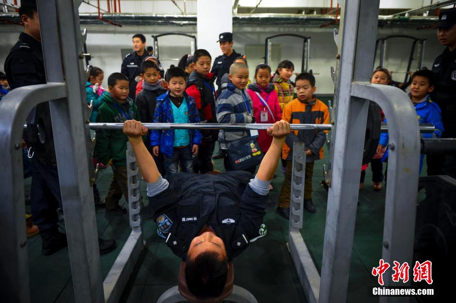 12月7日,乌鲁木齐一小记者团来到该市特警八支队驻地,体验特警使用的各类枪械,近距离感受警用排爆机器人,亲身体验特警训练器材,观摩特警飞虎队、警犬队训练科目,并与特警叔叔共进午餐,详细了解特警日常训练、生活的细节。方涛 摄