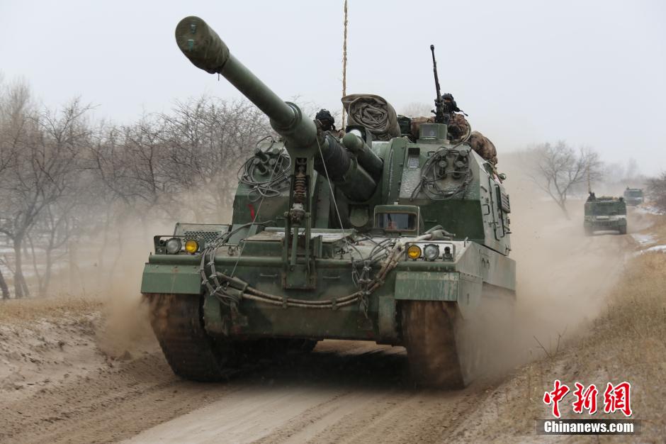 12月10日,沈阳军区某机械化师炮兵团远程机动到科尔沁草原深处,参加集团军组织的冬季实兵演习,锤炼严寒条件下的作战能力。中新社发 李祥辉 摄