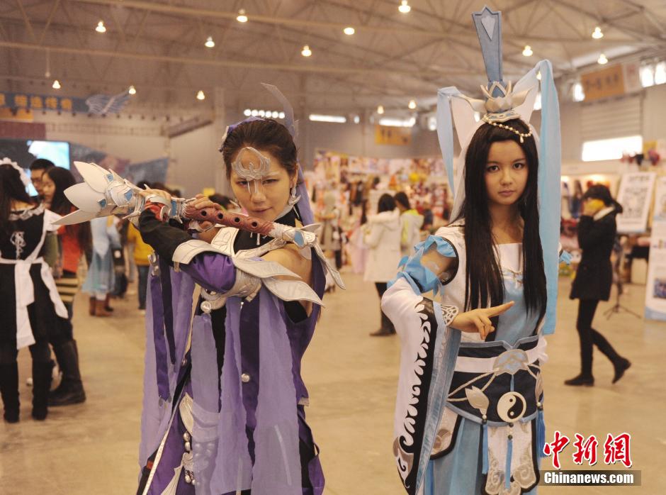 12月14日,参加2013首届金猫奖Cosplay团体赛的选手们展示动漫造型。当日,2013首届金猫奖Cosplay大赛、首届金猫奖英雄联盟争霸赛在成都拉开战幕,来自全国各地的20支团队及40余名个人赛参赛者参加了预赛。此次Cosplay大赛分为团体赛和个人赛两部分,金猫团队金奖、金猫个人金奖、金猫最佳表演奖等九大类奖项等待选手角逐。据悉,成都高新区已聚集了200多家海内外数字游戏动漫企业,从业人员近3万人。中新社发 刘忠俊 摄