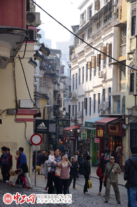 12月7日,临近圣诞,澳门大三巴牌坊前的商业街游人如织。 (中工网记者 笑语摄)