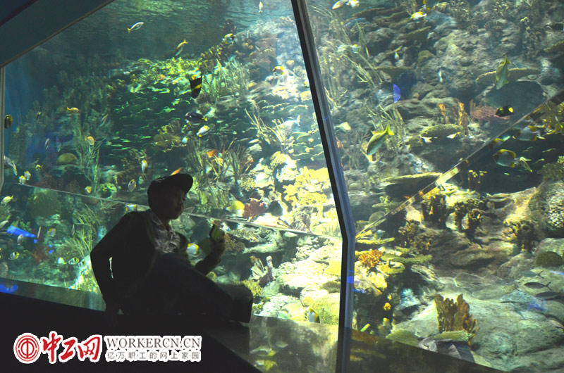 12月5日,一名香港小学生在海洋公园内参观,学习海洋生物知识。香港海洋公园(Hong Kong Ocean Park)是一个以海洋为主的大型主题公园,位于香港南区的黄竹坑,1977年1月10日落成启用。该公园分为3部分,分别为位于北面的山下花园,和南面的南朗山南麓及大树湾,占地共17公顷,有40多个游乐设施。山下花园与南朗山以登山缆车和海洋列车连接。而南朗山与大树湾之间,则以登山电梯连接,是全世界第二长的户外电动扶梯。 (中工网记者 笑语摄)