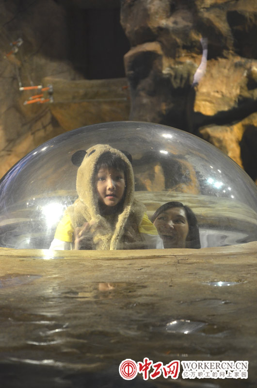 12月5日,一名小朋友在家长的带领下体验海豹、海狮等极地海洋动物的生活场景,趣味盎然。 (中工网记者 笑语摄)