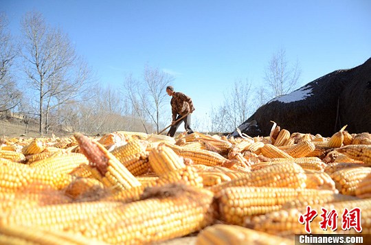 费尽周折,王步霄终于将地里的玉米搬回到家里的碾场上,这比其他村民的收割时间延迟了一个多月。随着身体日渐衰老,他对繁重的农活已倍感吃力。冯志军 摄