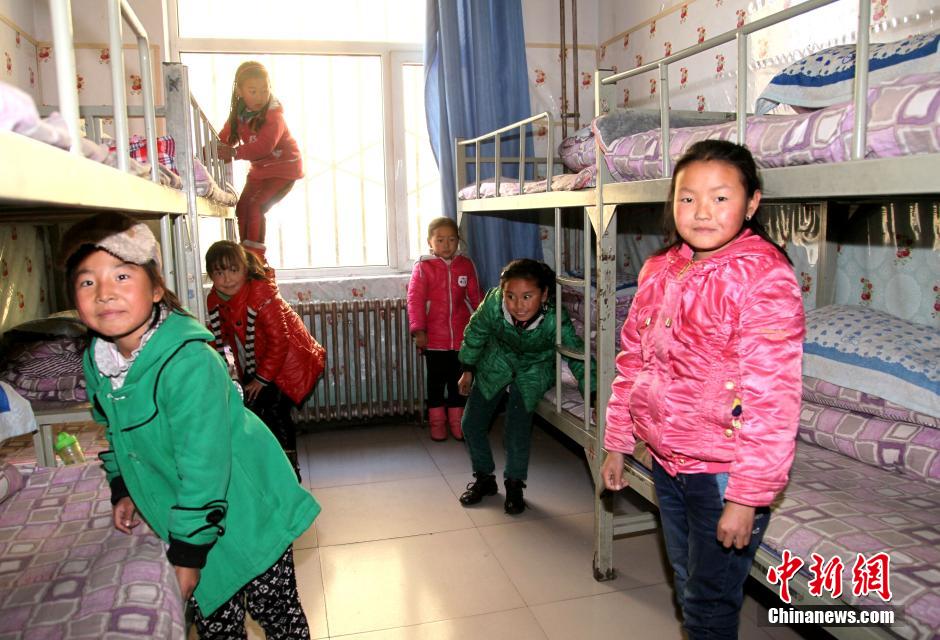 12月18日,青海省海南藏族自治州共和县第一民族寄宿制小学内,整理宿舍的少数民族小朋友。该校共有2200多名学生,其中少数民族学生占99%。除137位专任教师外,学校还为学生配备了27名炊事员,11名保育员,4名保安,5名洗衣人员等。为方便偏远地区少数民族学生上课,该校实行寄宿制,每个月上23天课,放假7天。中新社发 陈小愿 摄