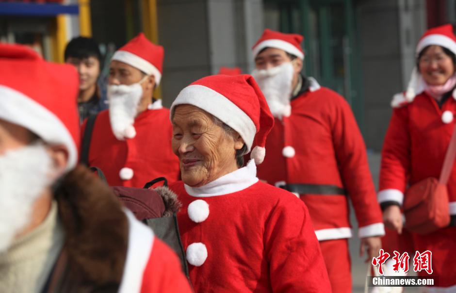 12月22日,芬兰“正版圣诞老人”现身济南街头,与济南版“圣诞老人”联欢。当日,来自芬兰“圣诞老人村”的圣诞老人,济南街头邀市民扮“圣诞老人”,迎接圣诞节到来。中新社发 张勇 摄