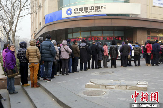 12月24日,北京市民在某银行网点排队兑换“马年纪念币”。中新社发 李慧思 摄