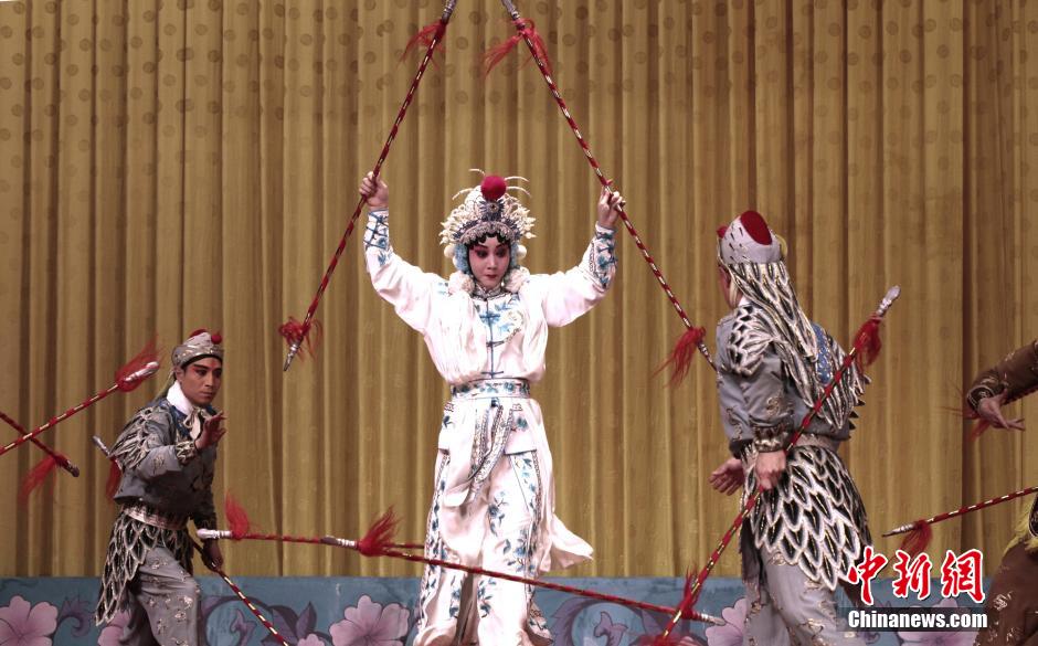 12月23日晚,北京京剧院秋声艳影慈善公益展演活动在台北登场,演员们的精湛演出博得满堂彩。图为京剧《盗仙草》片段。中新社发 董会峰 摄