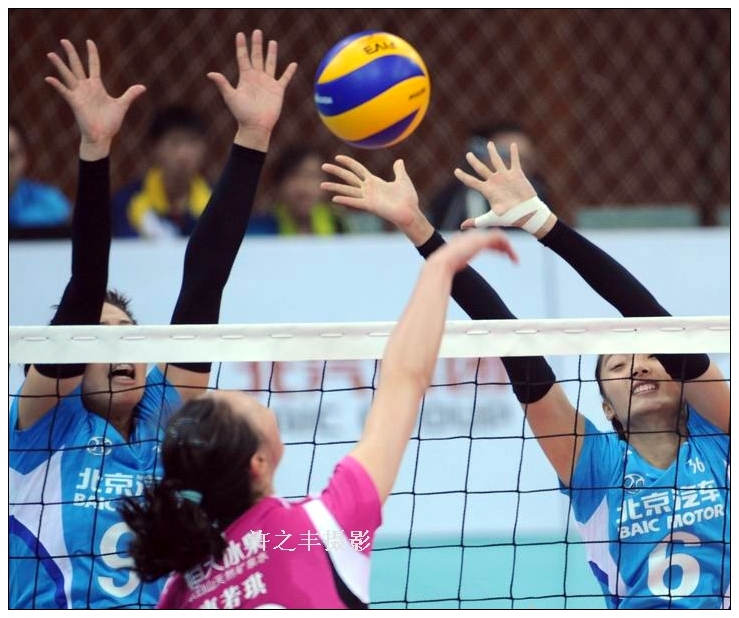 2013年12月24日晚,2013-2014赛季全国女排联赛第七轮的比赛。四连胜的北京女排主场迎战保持不败的广东恒大。恒大的外援霍奇在首局中受伤下场乱了本队的部署,气势大振的北京队直落三局完胜恒大收获五连胜,三局比分为25比20、25比16和25比19。恒大女排虽遭赛季首场失利但依然以3分优势在B组中领先。         许之丰摄影2013年12月24日记录于北京