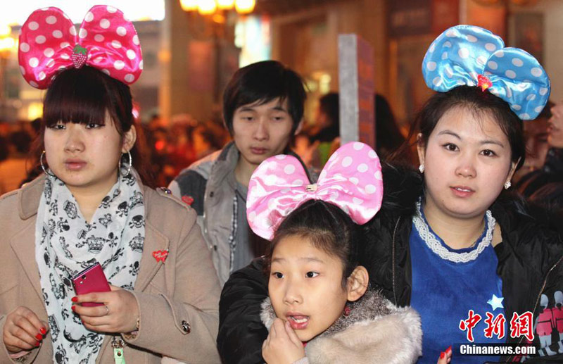 12月24日,平安夜,重庆主城各大商圈灯火辉煌、欢乐四溢。解放碑商圈浓厚的节日氛围,吸引众多市民前往庆祝。图为重庆街头市民盛装出行庆祝“平安夜”。周毅 摄