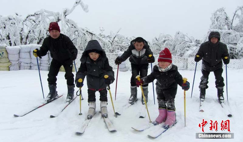 12月26日,以“祈福求祥拜普贤,赏雪滑雪泡温泉”为主题的第十五届峨眉山冰雪温泉节拉开序幕,滑雪体验、雪地摩托、雪上飞碟等众多冰雪娱乐项目吸引了来自八方游客。图为小朋友们正在滑雪。袁士洪 摄
