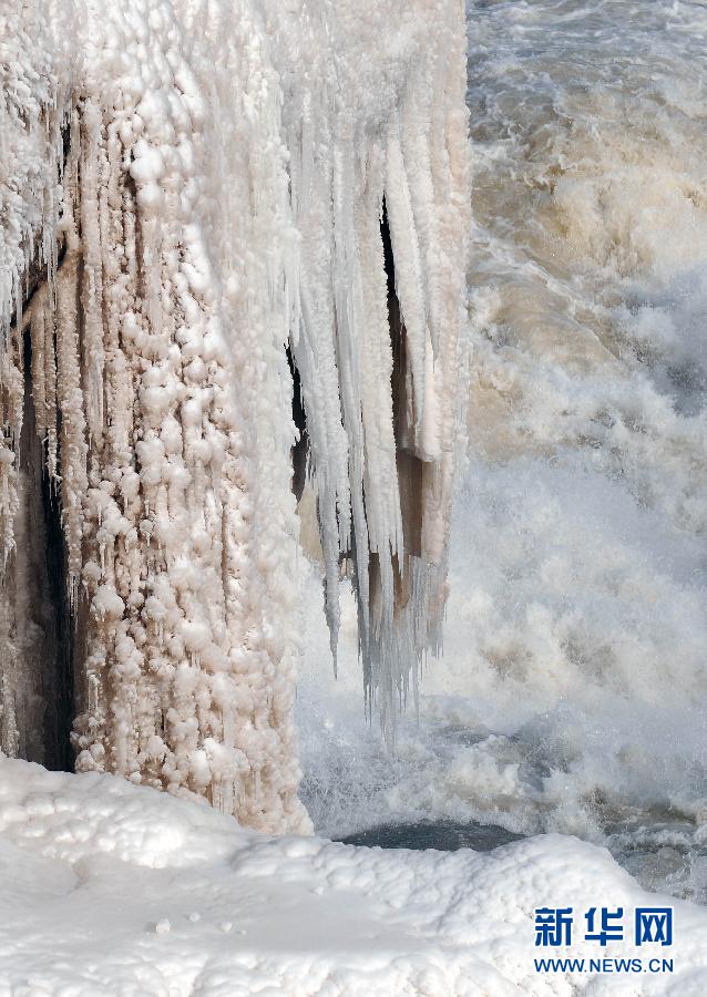 12月28日,游客们在山西吉县壶口瀑布景区拍摄冰瀑奇观。近日,黄河壶口瀑布一片银装素裹,流凌冰挂的奇景吸引了不少游客。 新华社记者范敏达摄