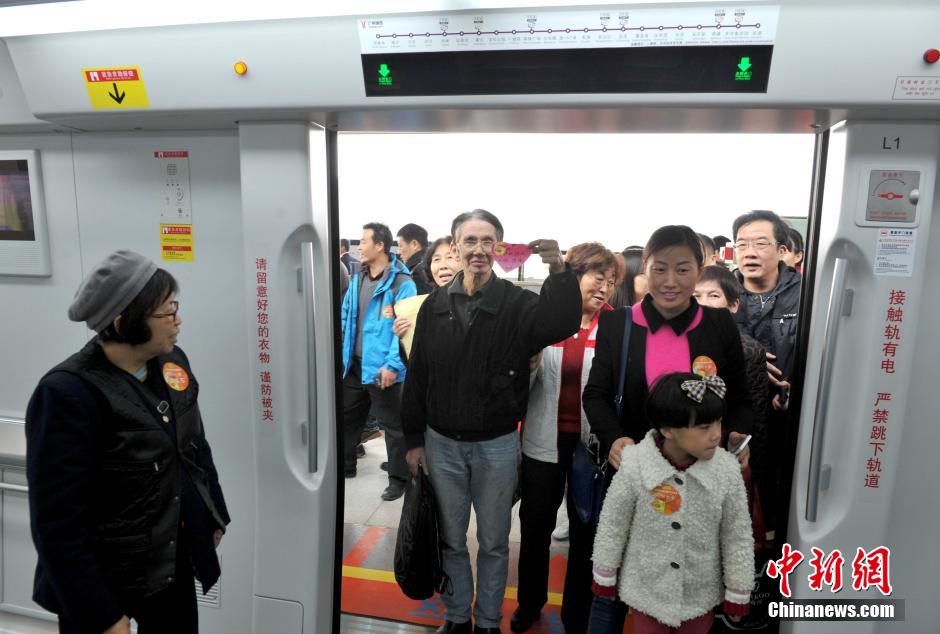 12月28日,广州地铁六号线首期正式服务市民。广州地铁邀请沿线拆迁户、建设者和市民代表率先试乘。中新社发 刘卫勇 摄