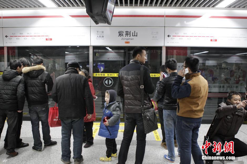 12月28日,郑州市民在地铁站内等车。当日,郑州市开通首条地铁,正式迈入“地铁时代”,成为全国第18个开通地铁的城市。中新社发 王中举 摄