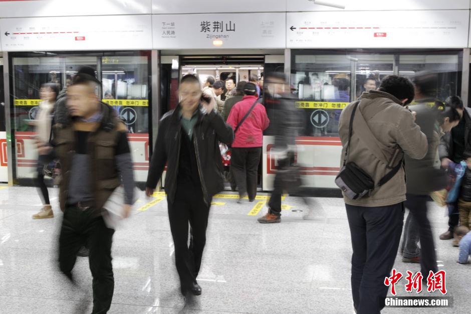 12月28日,郑州市民在地铁站内等车。当日,郑州市开通首条地铁,正式迈入“地铁时代”,成为全国第18个开通地铁的城市。中新社发 王中举 摄