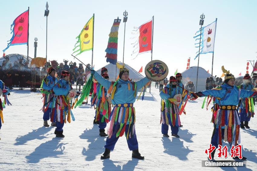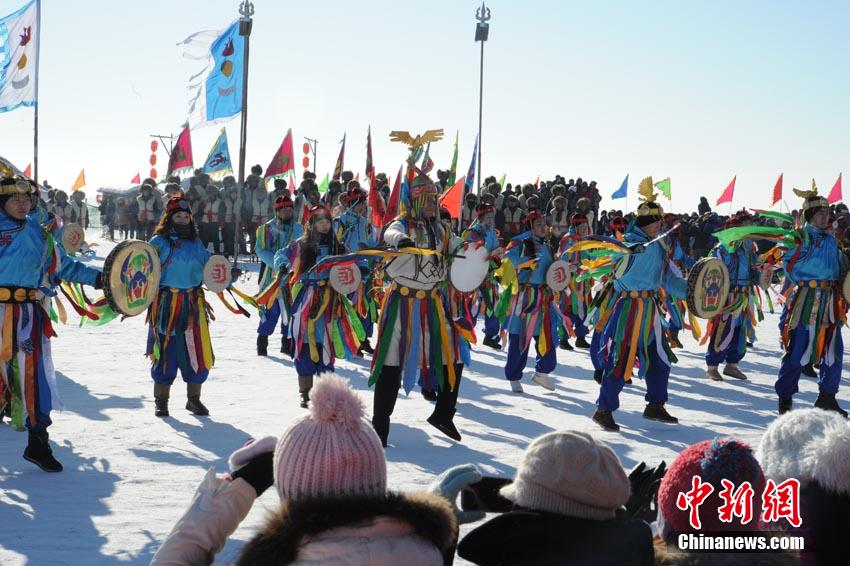 吉林松原查干湖2013年冬季捕鱼活动12月28日正式开启,当天单网就捞出大约10万斤鱼,再次成为奇观,而随后在现场举行的拍卖活动中,当天出网的第一尾鱼拍出了288888元人民币的天价。图为冬捕开始前按蒙古族习俗进行的祭湖、醒网仪式。崔颜锋 摄