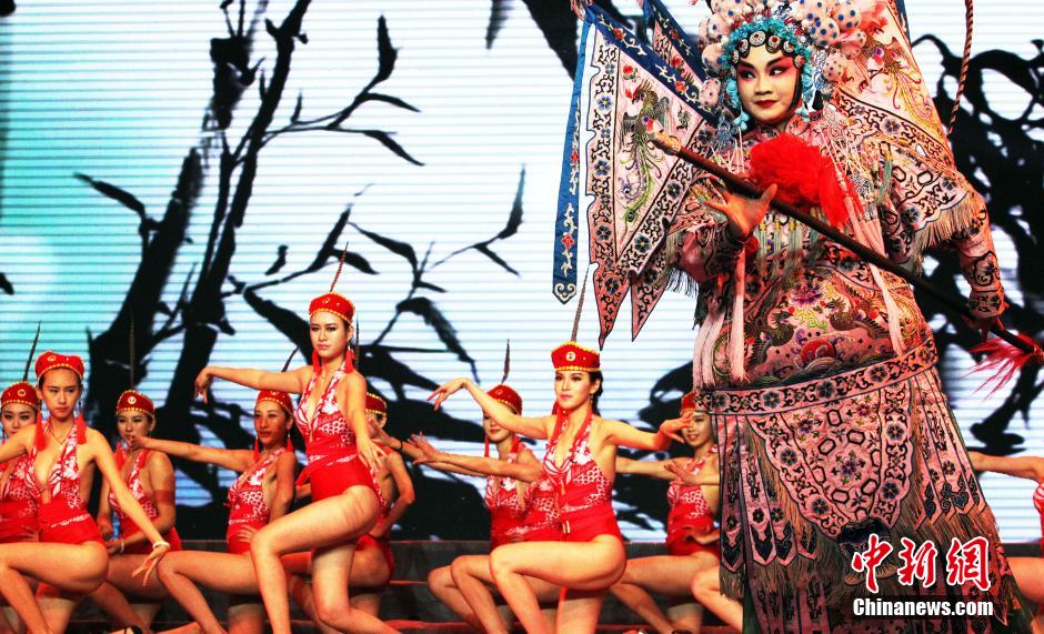 12月29日晚,正在四川成都参加2013世界休闲小姐大赛(中国)年度总决赛的众佳丽,在决赛彩排上推出主题为“天府四川-蜀中江南”川剧变脸泳装秀。中新社发 钱兴强 摄
