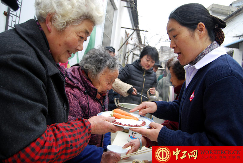 1月7日,江苏省镇江市金山社区卫生服务中心医护人员在向空巢老人传授餐饮与健康知识。