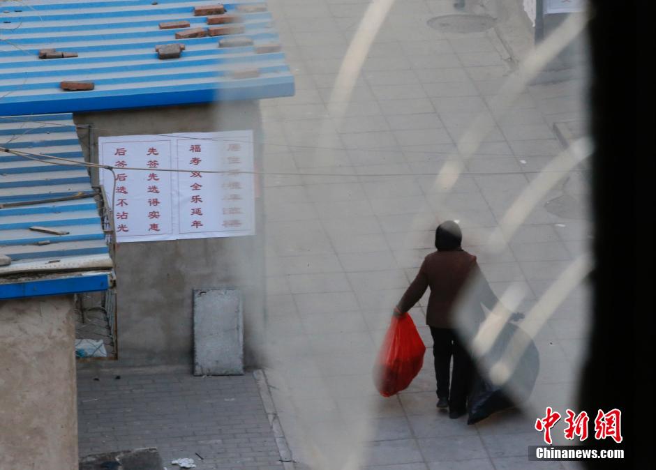 1月8日,市民从棚户区旁走过。中新社发 刘关关 摄