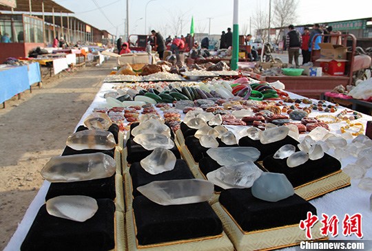 距新疆首府乌鲁木齐市300余公里的鄯善县七克台镇南湖村,是全疆乃至全国闻名的彩玉奇石村。中新社发 戚亚平 摄
