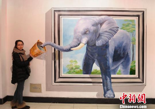 1月14日,在长春市某商场内,惟妙惟肖的3D立体壁画吸引了过往的市民,身临其境的视觉感受给市民带来许多欢乐。张瑶 摄