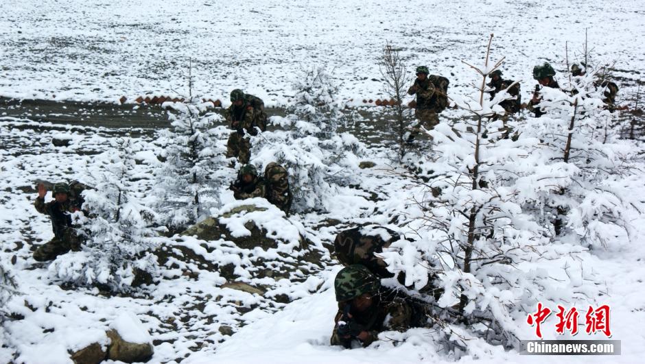 连日来,武警四川总队二支队为提升部队反恐处突作战能力,借寒冷天气开展冬训,官兵们在风雪中开展班组战斗动作协同、擒敌术等技战科目训练,在风雪中锤炼意志、强体魄,提高战术水平。图为官兵们正在雪地中搜索前进。杨华 摄