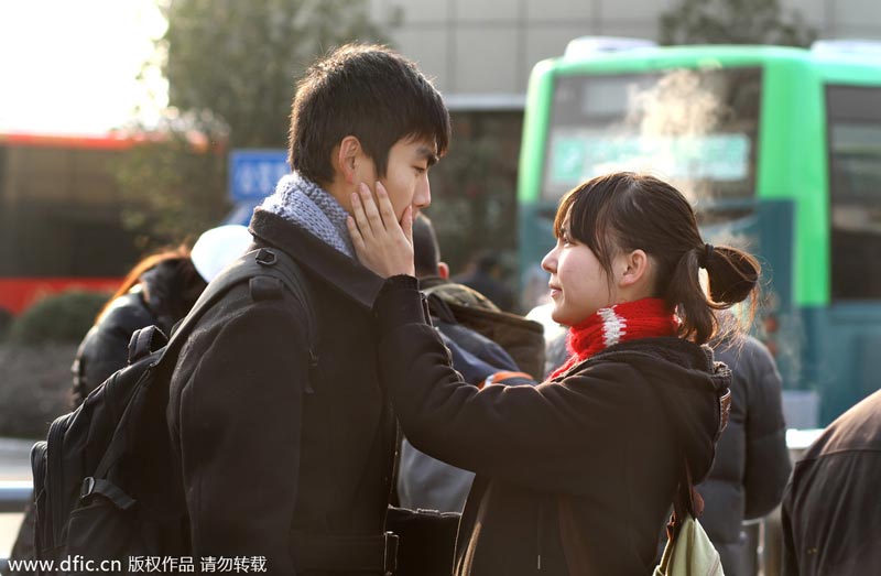 2014年1月15日,若将春运旅客看做一个整体,这个庞大的群体拥有相似的人口学特征,若只看其中单独的个体,每一个人都有一个故事。春运照片年年岁岁人相似,我们却总能在每一个定格的瞬间看到自己,想到家人,意识到“我与这个世界息息相关”。 春运来临,各种难舍难分经常在离别的车站上演,而母子、情侣们的各种“吻别”更是给这种难分难舍的场景平增几分爱意,一起来看看春运回家的临别众生相吧!