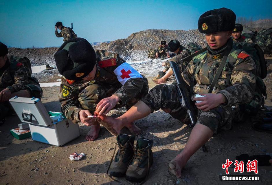 图为卫勤人员及时为训练中受伤的官兵提供理疗服务。柯大为 摄