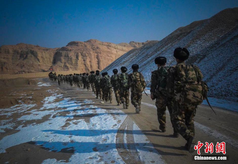 图为部队徒步行军前往山地复杂地形地区。庞古 摄