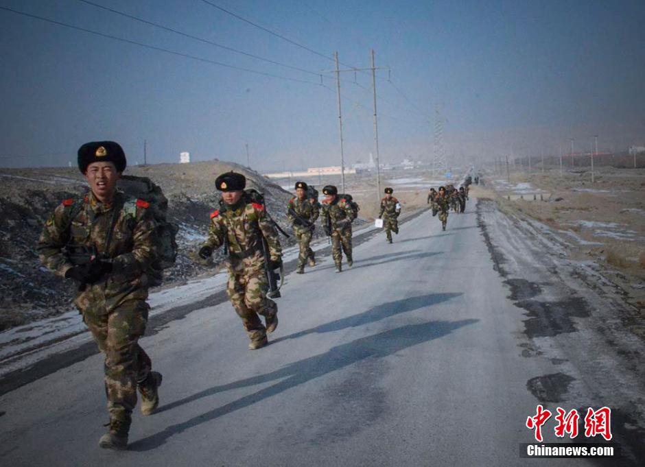 图为官兵负重15公斤在进行强行军。庞古 摄