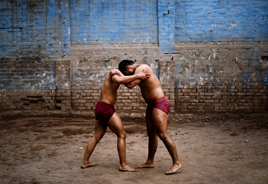 摄影师Muhammed Muheisen记录下巴基斯坦“古什蒂”摔跤手的训练场景。“古什蒂”摔跤手的训练费非常高,每位摔跤手一天的训练大概需耗费8.5美元至12美元,其中包括按摩费、食物费和课程费。由于物价高昂,许多学员都在校外打零工以凑足“学费”。
