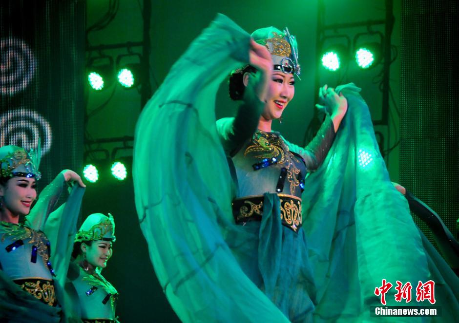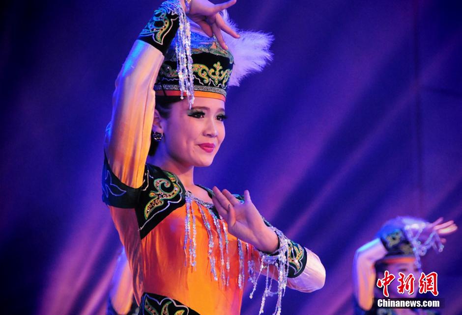1月16日晚,《相约美丽阿勒泰》歌舞晚会在新疆阿勒泰市首演,观众们被精彩的民族歌舞所震撼。据介绍,《相约美丽阿勒泰》是以当地哈萨克族优秀的传统文化为主要题材创作的一部独具区域文化的歌舞集锦,集中反映了阿勒泰深厚的草原文化历史底蕴和丰富多彩的民间艺术表达形式。马新龙 摄