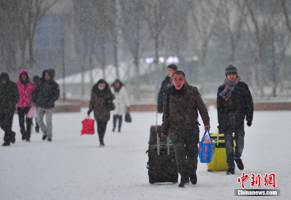 1月19日,辽宁省沈阳市降下新年第一场雪,给市民的出行带来了不便,当日最低气温为-20°C。中新社发 于海洋 摄