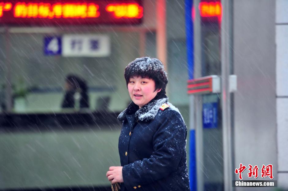 1月19日,辽宁省沈阳市降下新年第一场雪,给市民的出行带来了不便,当日最低气温为-20°C。中新社发 于海洋 摄