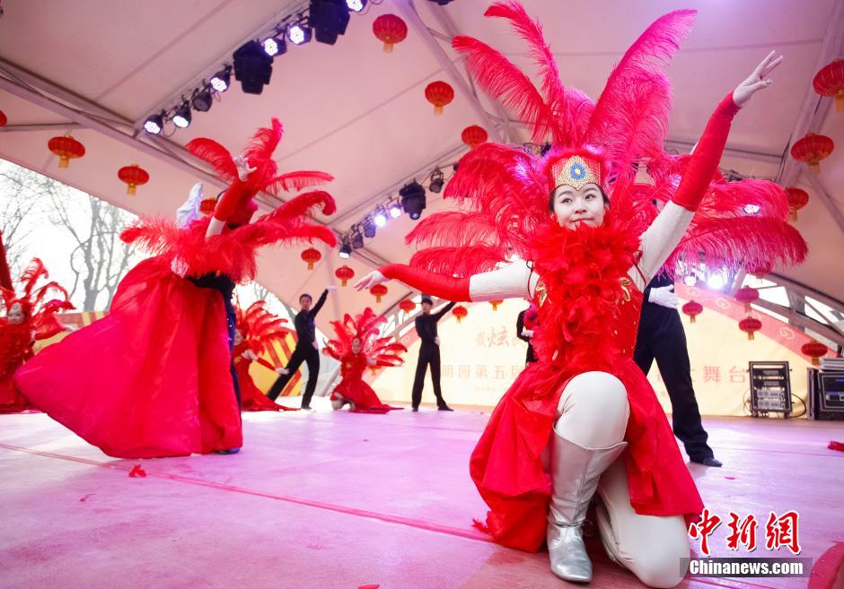 1月19日,表演者演绎火热的桑巴舞。当日,北京圆明园第五届皇家庙会演出活动在圆明园春泽斋进行彩排。据悉,2014年春节期间,圆明园将举办14场包括京剧、变脸、民俗歌舞等表演形式的文艺演出活动。中新社发 熊然 摄