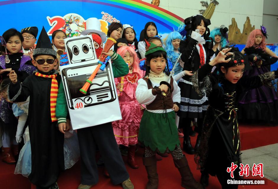 1月19日,“芬达杯”上海市学生动漫画大赛颁奖典礼举行,现场呈现了学生们赋有创意的动漫画作品,其强烈的视觉效果加上趣味的造型表演,展示了学生们在“动漫画大课堂”中所感受的文化、快乐及玩趣。据了解,该比赛自2013年5月启动后,吸引了当地50多所中小学校、10万学生参与互动。图为学生身着动漫服饰进行cosplay走秀表演。中新社发 潘索菲 摄