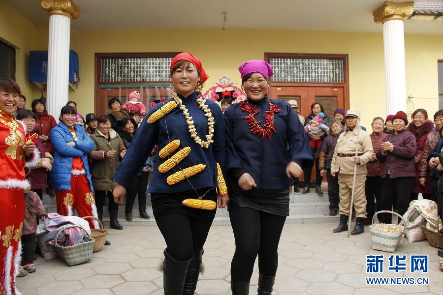 1月20日,河南省内黄县城关镇王小汪村的农民演员在排练“村晚”时装秀。春节临近,河南省安阳市内黄县城关镇王小汪村的村名自发组织的“农民春晚”正在紧张筹备中,村民们自编自导了20余个源自生活的舞蹈、时装秀、情景剧、戏曲等节目。村民把旧衣服、被面、破布条等改装成演员的服饰,把农家现成的粮食、农具、炊具全都搬上了舞台,自己办一场既节俭又热闹的“农民春晚”。新华社发(刘肖坤 摄)