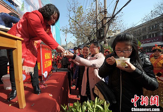 1月20日,武汉第26届五芳斋汤圆节开幕。据了解,今年老字号五芳斋新推出了草莓、菠萝、芒果、蓝莓水果口味汤圆。现场,不少市民免费品尝了新产品。中新社发 张畅 摄