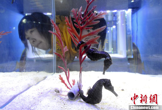 1月20日,游客观赏海马,马年沾“马”光。中新社发 张勇 摄
