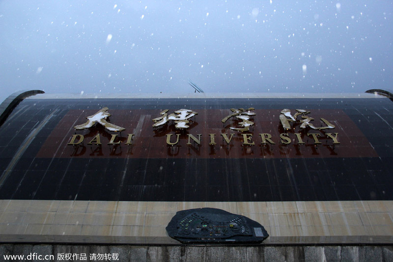 继2013年年底的罕见大雪之后,2014年1月20日傍晚大理古城中和村、大理学院古城校区等靠近苍山的地方又飘起了雪花,不一会不少屋舍盖了个白色的房顶,但是离大理古城十多公里远的大理市市区却没有下雪。据了解,头一天大理古城还艳阳高照。