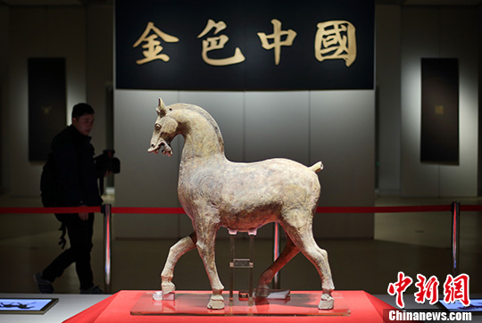 1月21日,观众被展出的东汉年间的陶马吸引。中新社发 泱波 摄