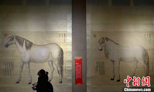 1月21日,观众被展出的骏马图吸引。中新社发 泱波 摄
