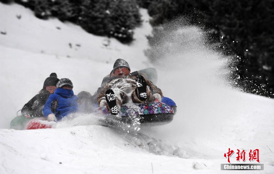 近日,新疆和静县第六届冰雪旅游节在该县巴音布鲁克镇拉开帷幕,近5000余名当地及外地游客参与其中。本届旅游节以“魅力和静 冰雪风情”为主题,吸引了来自各地的滑雪爱好者享受冰雪带来的快乐。图为游客在新疆和静县巩乃斯镇龙顺山庄滑雪场游玩。中新社发 确·胡热 摄