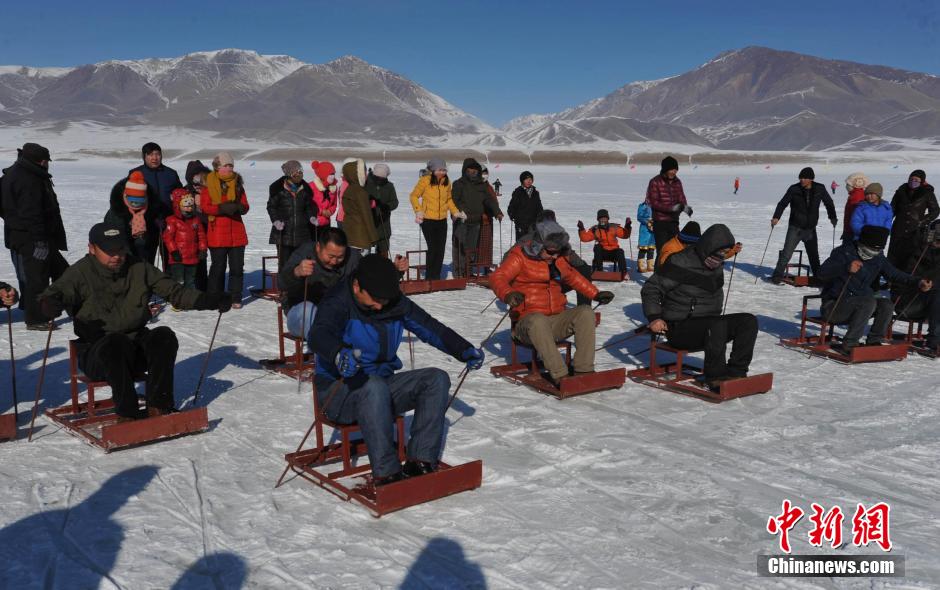 近日,新疆和静县第六届冰雪旅游节在该县巴音布鲁克镇拉开帷幕,近5000余名当地及外地游客参与其中。本届旅游节以“魅力和静 冰雪风情”为主题,吸引了来自各地的滑雪爱好者享受冰雪带来的快乐。图为游客在比赛冰上爬犁。中新社发 确·胡热 摄