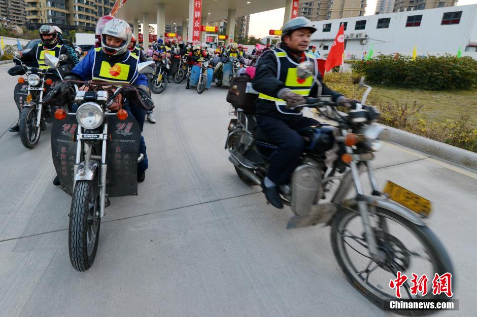 福州农民工骑摩托车返乡过春节
